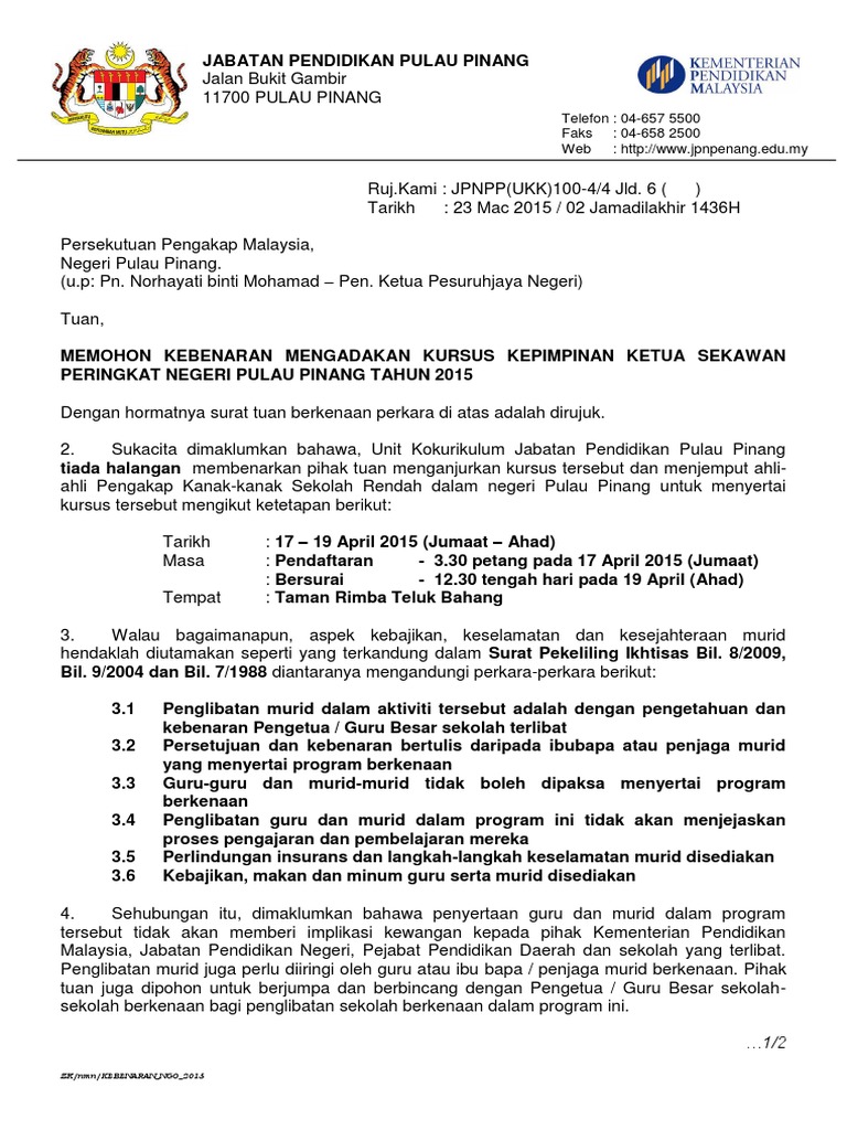 Surat Kebenaran Jpn Pulau Pinang Kursus Ketua Sekawan Pdf